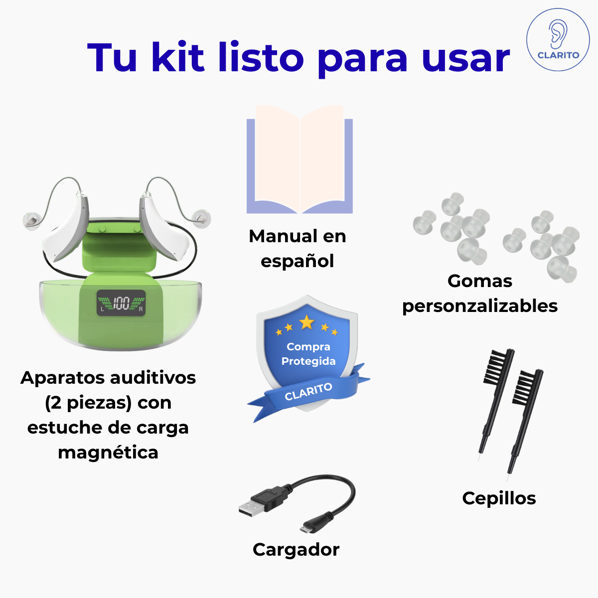 - Par de Audífonos Clarito Pro (Izquierdo y Derecho).